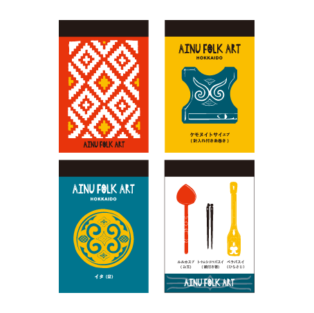 この「アイヌのくらしシリーズ」では、アイヌ文化に気軽に触れられるようにアイヌの皆さんのご協力を得ながら、出来るだけ文様のルールにそってデザインをしました。
